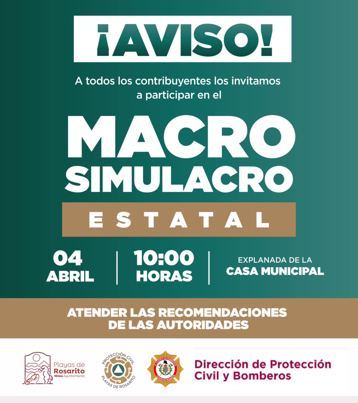 El gobierno municipal, encabezado por la Mtra. Rocio Adame Muñoz, se une al macrosimulacro estatal 2025 organizado por la Coordinación Estatal de Protección Civil; el cual se llevará a cabo el próximo 4 de abril a las 10:00 horas. en los edificios de gobierno municipal y estatal.