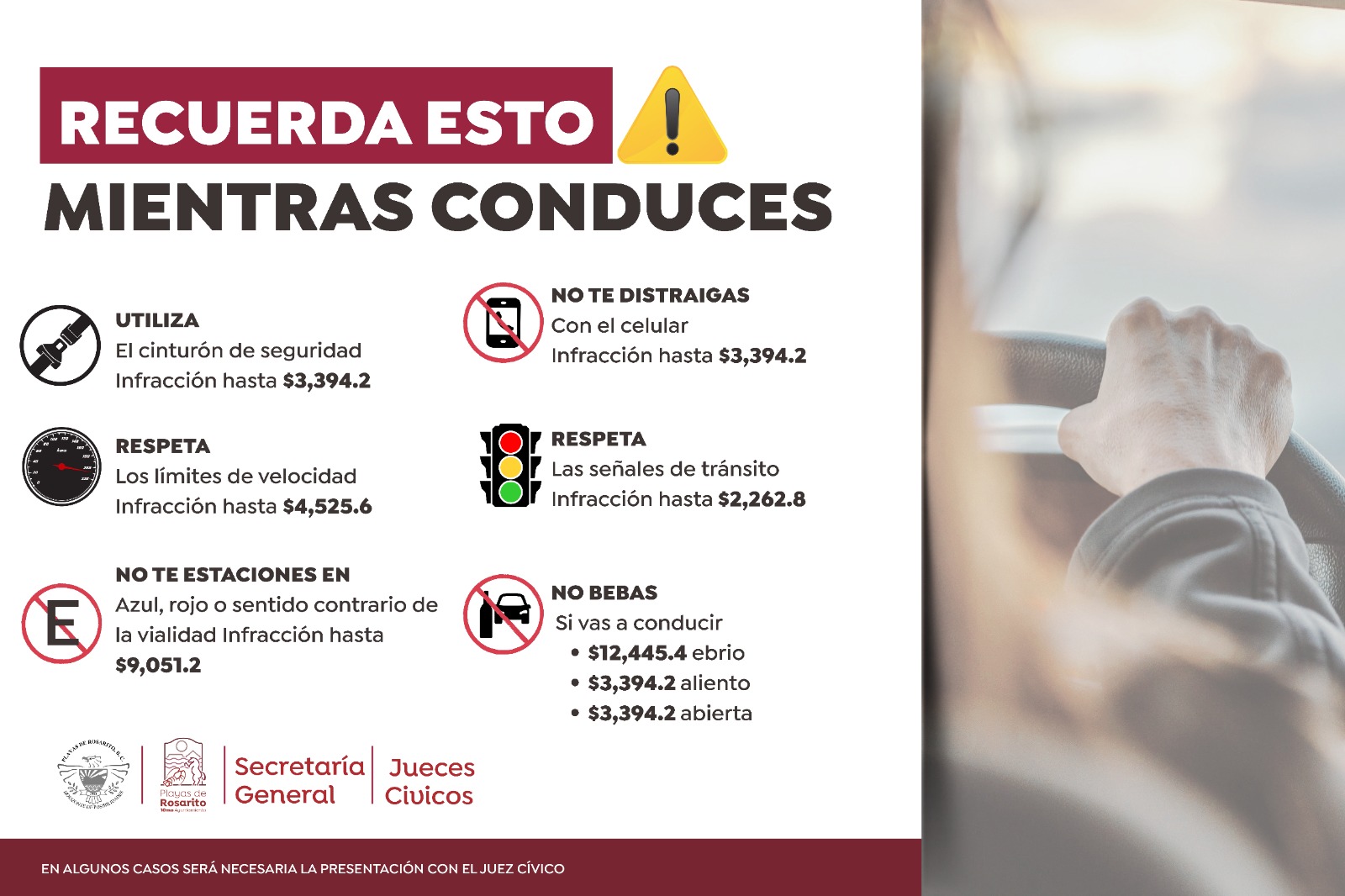 El Gobierno Municipal, encabezado por la alcaldesa Mtra. Rocio Adame Muñoz, a través de la Secretaría General, ha dado inicio a la campaña informativa “Rosarito Late Seguro”, con el objetivo de dar a conocer a la ciudadanía las disposiciones de tránsito vigentes y los motivos de infracción establecidos en el Reglamento Municipal.
