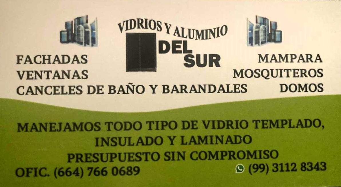 VIDRIOS Y ALUMINIOS DEL SUR, OFRECE EN TODO BAJA CALIFORNIA EXCELENTES OFERTAS Y CALIDAD EN: