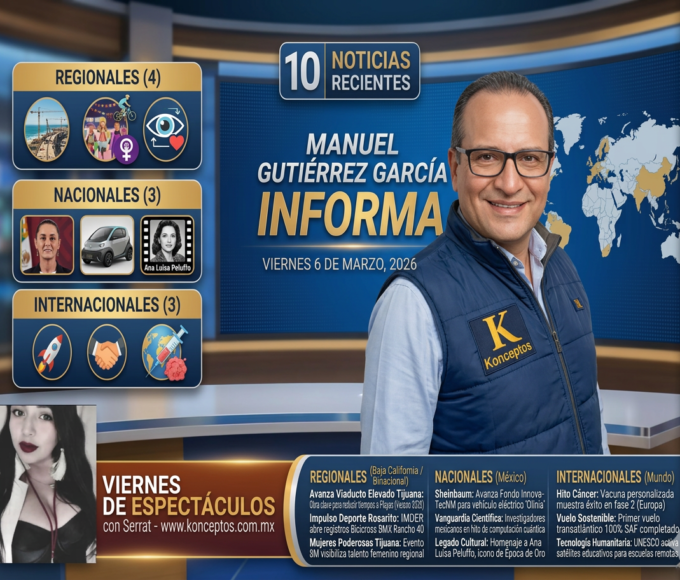 ¡Qué tal, muy buenos días! Les saluda Manuel Gutiérrez García. Iniciamos este viernes 06 de marzo de 2026 con la información más relevante para nuestra región binacional. Prepárese, porque hoy es viernes de espectáculos con Serrat y tenemos una agenda llena de noticias positivas en La Ke Kurada Informa a través de konceptos.com.mx.