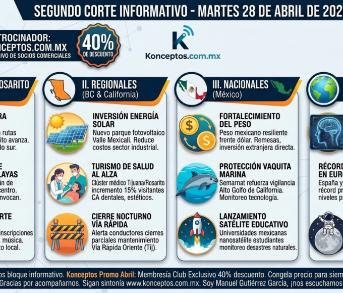 - Tijuana, Potencia Económica 2026: Proyecciones económicas sitúan a nuestra ciudad como la cuarta economía a nivel nacional para finales de este año, superando a metrópolis históricas gracias a su dinamismo industrial.