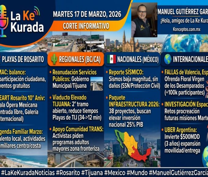 “¡Qué tal, amigos! Los saluda Manuel Gutiérrez García. Continuamos con la información más relevante en este martes 17 de marzo. En Konceptos.com.mx no nos detenemos y aquí les presento un nuevo resumen con noticias que impulsan a nuestra región y al mundo. ¡Iniciamos!”