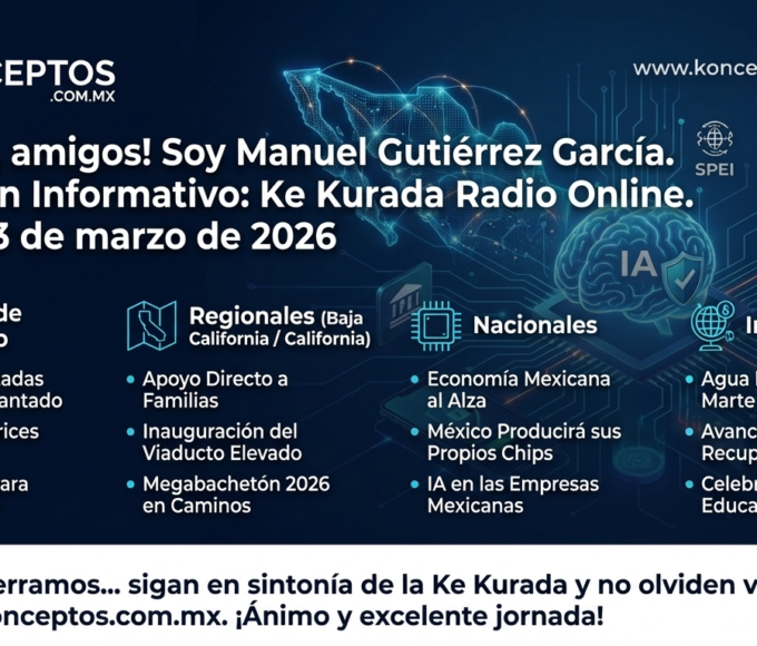 Konceptos es el portal de medios de comunicación líder en Playas de Rosarito, Baja California, consolidado como el referente digital más dinámico de la región. Con una trayectoria enfocada en la inmediatez y la veracidad, el portal ha logrado crear una comunidad sólida que genera más de 15,000 visitas diarias. Nuestra plataforma no solo informa, sino que conecta a las empresas con su audiencia a través de una innovadora estrategia multimedia que combina: Alcance Digital: Más de 18,000 visualizaciones diarias en nuestro portal. Presencia en Radio: Alianza estratégica con La Ke Kurada para transmisiones en vivo. Activación de Marca: Dinamismo puro con el Komunica Dog, nuestra mascota oficial que lleva la publicidad de la pantalla a las calles.