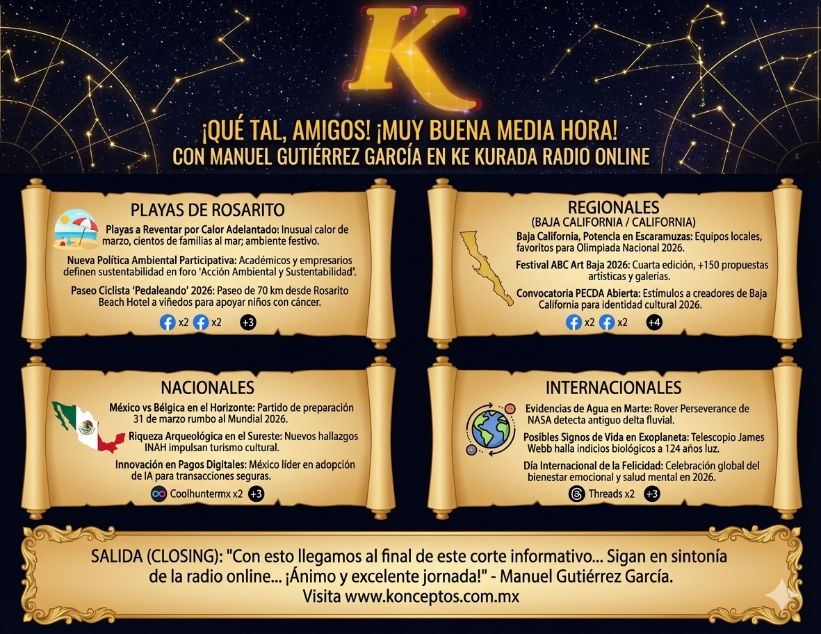 Es momento de darle la vuelta al mundo y aterrizar en nuestra región, desde el corazón de Playas de Rosarito, recorriendo Baja California y California, hasta las noticias que están marcando la pauta nacional e internacional.