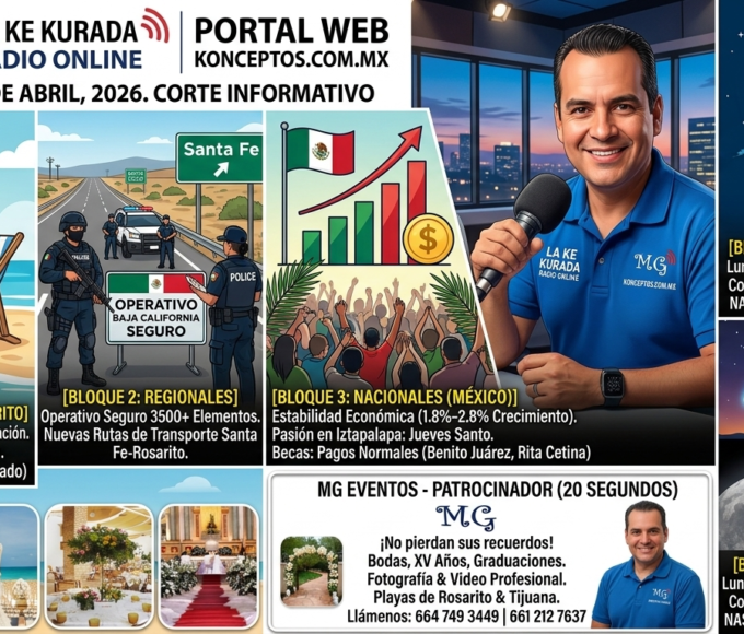 ¡Qué tal, amigas y amigos! Muy buenos días. Les saluda su servidor Manuel Gutiérrez García en este nuevo corte informativo de La Ke Kurada Radio Online, el espacio donde la noticia se escucha con fuerza. Quédense con nosotros en el portal web konceptos.com.mx para enterarse de lo que ocurre aquí, allá y en todo el mundo. Vamos de lleno con la información.