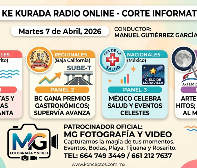 Konceptos es el portal de medios de comunicación líder en Playas de Rosarito, Baja California, consolidado como el referente digital más dinámico de la región. Con una trayectoria enfocada en la inmediatez y la veracidad, el portal ha logrado crear una comunidad sólida que genera más de 15,000 visitas diarias. Nuestra plataforma no solo informa, sino que conecta a las empresas con su audiencia a través de una innovadora estrategia multimedia que combina: Alcance Digital: Más de 18,000 visualizaciones diarias en nuestro portal. Presencia en Radio: Alianza estratégica con La Ke Kurada para transmisiones en vivo. Activación de Marca: Dinamismo puro con el Komunica Dog, nuestra mascota oficial que lleva la publicidad de la pantalla a las calles.