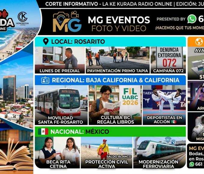 - Cultura en la FIL: La Secretaría de Cultura estatal alista una oferta de libros gratuitos y presentaciones literarias para la próxima FIL UABC 2026 en Mexicali, Tecate y Ensenada.