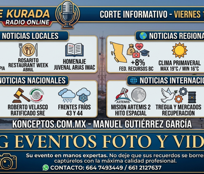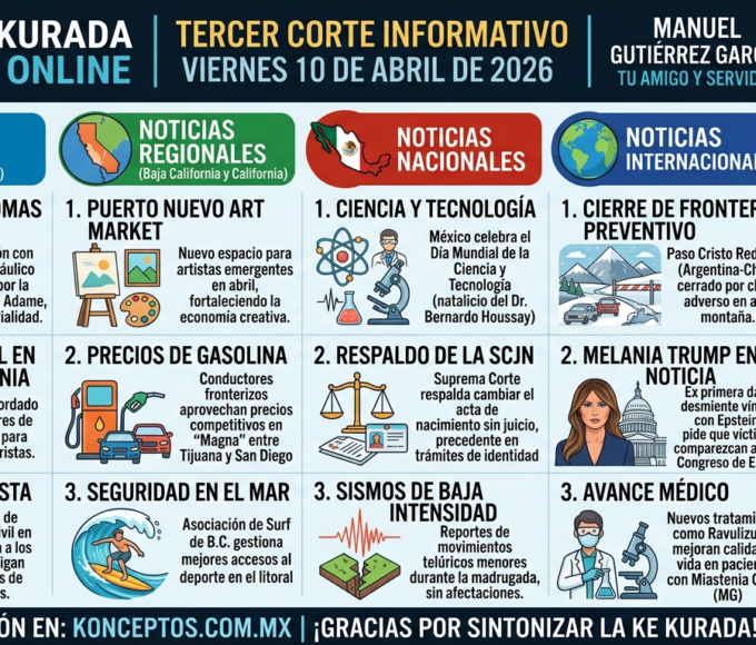 ¡Qué tal, familia de La Ke Kurada Radio Online! Bienvenidos a este corte informativo de hoy viernes 10 de abril de 2026. Soy su amigo y servidor, Manuel Gutiérrez García, y ya estamos listos en el portal Konceptos para llevarles lo más trascendente de nuestra ciudad, el estado y el mundo. ¡Comenzamos!