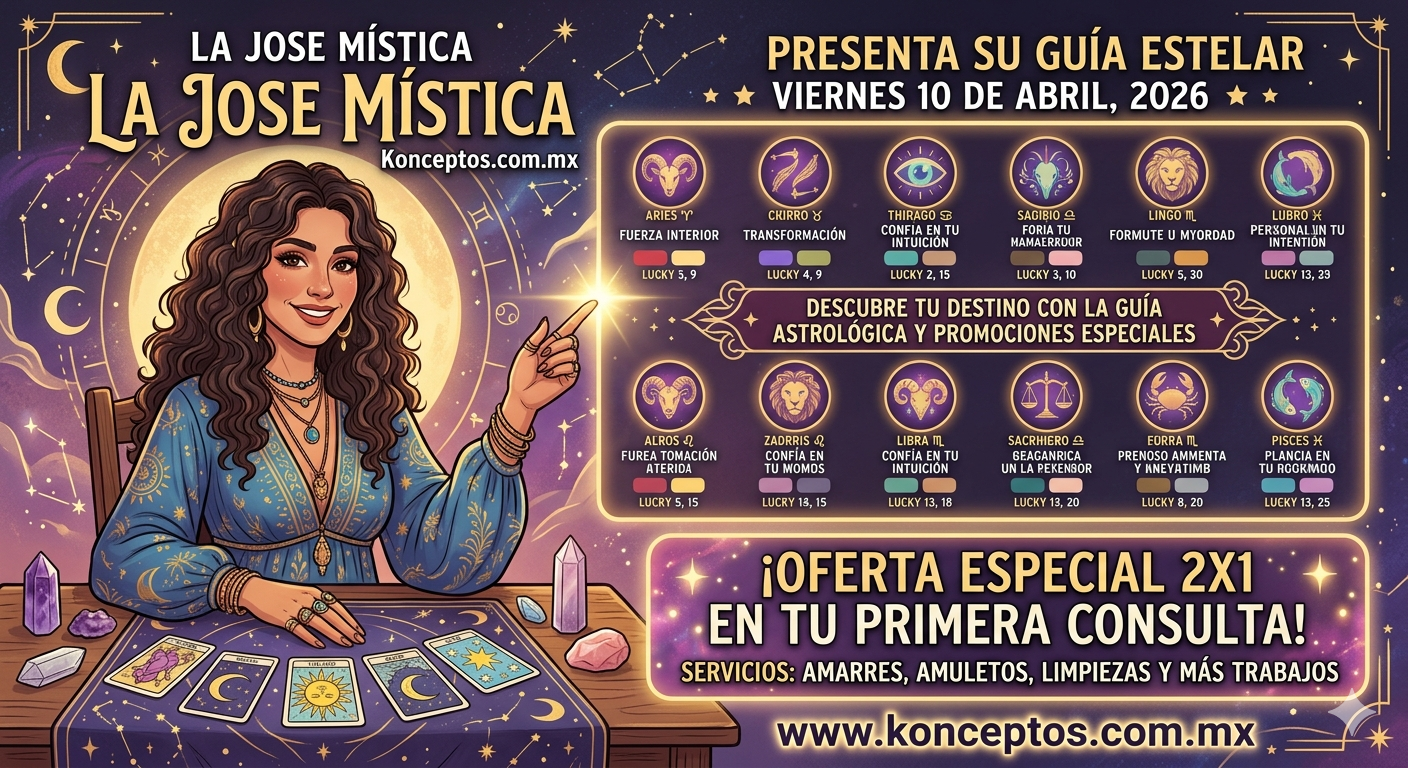 Para hoy viernes 10 de abril de 2026, aquí tienes la guía estelar de La Jose Mística para el portal konceptos.com.mx, con los consejos para cada signo del zodiaco: