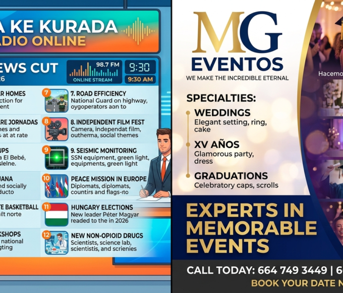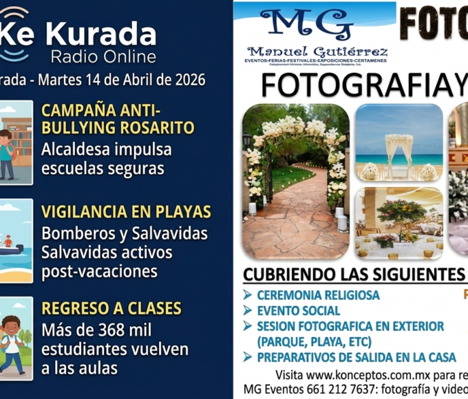 🎙️ “Con esto cerramos este bloque informativo. Gracias por su preferencia y por mantenerse conectados a través de Ke Kurada Radio Online y Konceptos.com.mx. No olviden seguirnos en nuestras redes sociales y contactarnos para sus eventos sociales al 661 212 7637. Soy Manuel Gutiérrez García, les deseo una excelente tarde y nos escuchamos en el próximo corte.”