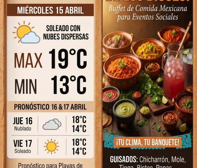 Para hoy, jueves 16 de abril de 2026, Playas de Rosarito experimentará un clima de transición con nubes matinales que se disiparán por la tarde, alcanzando una temperatura máxima de 22°C (72°F) y una mínima de 10°C (50°F). Se esperan vientos del oeste-suroeste de entre 15 y 25 km/h