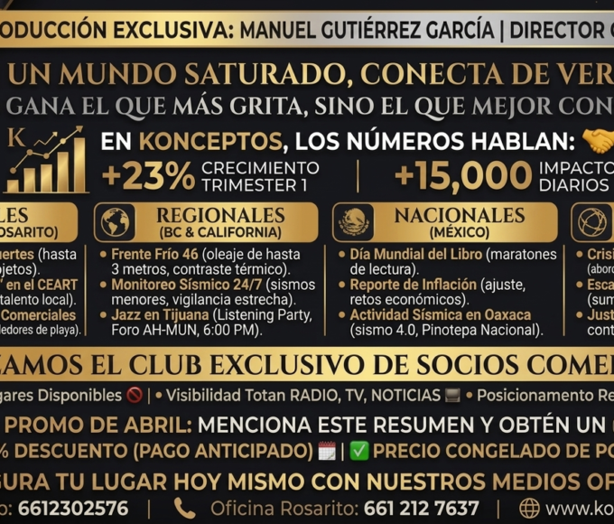 “Gracias por informarte con nosotros. Recuerda que para que tu evento social sea inolvidable, MG Eventos: Manuel Gutiérrez es tu mejor aliado en fotografía y video profesional. Ceremonias religiosas, sesiones en exterior y eventos sociales en Rosarito y Tijuana. Llámanos al 664 7493449. Continuamos con más música y energía aquí, en La Ke Kurada Radio Online.”