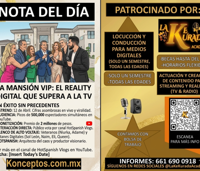 Konceptos es el portal de medios de comunicación líder en Playas de Rosarito, Baja California, consolidado como el referente digital más dinámico de la región. Con una trayectoria enfocada en la inmediatez y la veracidad, el portal ha logrado crear una comunidad sólida que genera más de 15,000 visitas diarias. Nuestra plataforma no solo informa, sino que conecta a las empresas con su audiencia a través de una innovadora estrategia multimedia que combina: Alcance Digital: Más de 18,000 visualizaciones diarias en nuestro portal. Presencia en Radio: Alianza estratégica con La Ke Kurada para transmisiones en vivo. Activación de Marca: Dinamismo puro con el Komunica Dog, nuestra mascota oficial que lleva la publicidad de la pantalla a las calles.