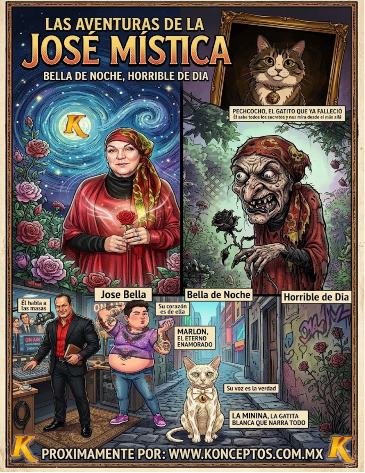 ¡Córranle por el cafecito porque el chisme está que arde! Ya no es un secreto a voces en los callejones de la Tía Juana. Después de años de esconderse entre inciensos baratos y velas chorreadas, la verdad sale a la luz. Konceptos.com.mx se metió hasta la cocina (bueno, al cuarto de servicio) de la vecindad más escandalosa de Tijuana para traerles el estreno que hará que hasta las envidiosas se persignen: “Las Aventuras de La José Mística: Bella de Noche, Horrible de Día”.