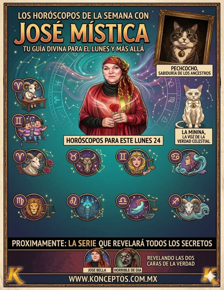 ¡Que la luz los acompañe en este inicio de semana! Recuerden que las estrellas inclinan, pero no obligan; el poder de cambiar su destino está en sus manos. ¡Bendiciones y mucha luz de su Jose Mística para todo el equipo de Konceptos!