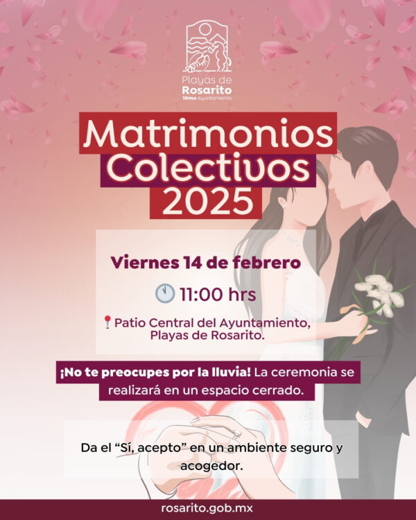 Byadminfebrero 14, 2025El 10mo. Ayuntamiento de Playas de Rosarito, que preside la Mtra. Rocio Adame Muñoz, informa a las y los contrayentes que participan en...